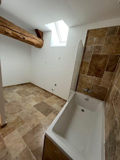 – Rénovation totale du sol jusqu’à la couverture avec garantie décennale